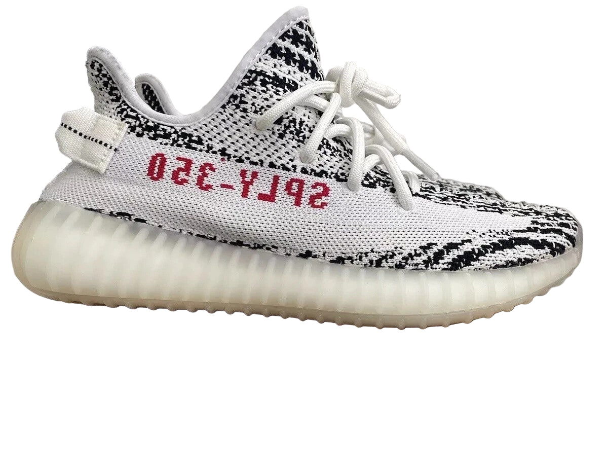 The Yeezy Boost 350 V2 “Zebra” is a certified icon from Kanye West’s Adidas era, blending bold contrast with futuristic comfort. Featuring a black-and-white Primeknit upper with red “SPLY-350” branding, this silhouette delivers visual punch and sock-like fit. Boost cushioning and a translucent rubber sole offer bounce and traction, while the striped pattern makes it one of the most recognizable Yeezy colorways ever released.