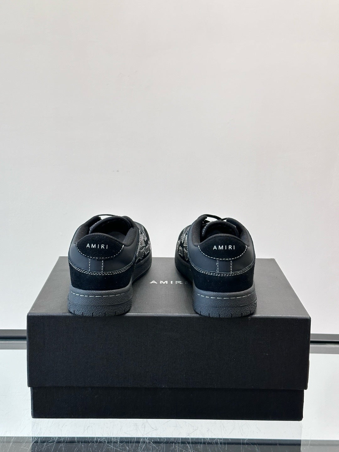 The Amiri Skel Low brings a bold, graphic edge to the classic low-top silhouette. Crafted from premium black leather with contrasting white leather overlays, each panel is cut into skeletal shapes that wrap across the upper for Amiri’s signature look. A perforated toe box, flat laces, and padded collar provide comfort, while the rubber sole gives everyday durability. Finished with discreet branding, these sneakers are a cornerstone of Amiri’s streetwear aesthetic — versatile, statement-ready, and built for rotation.