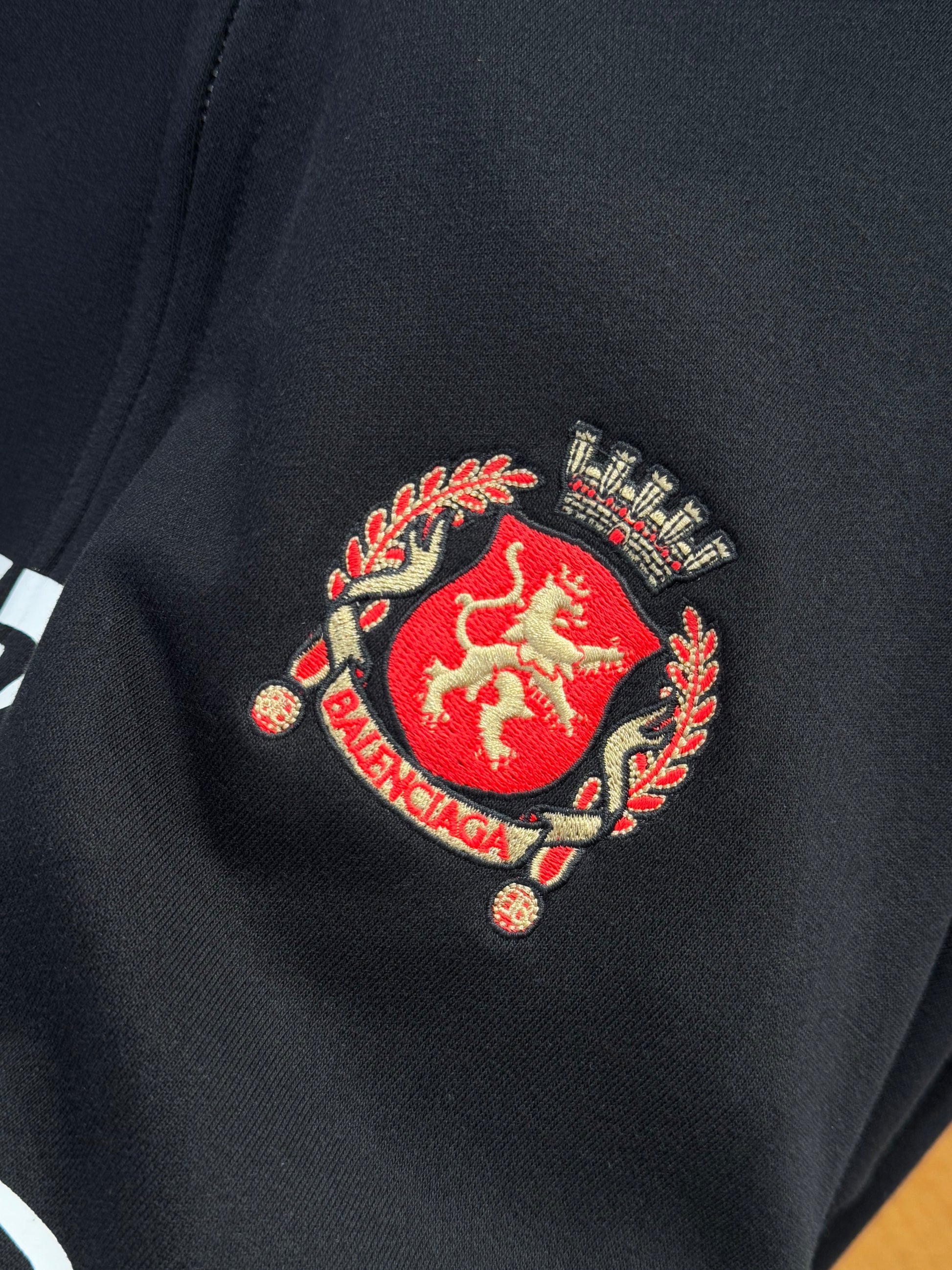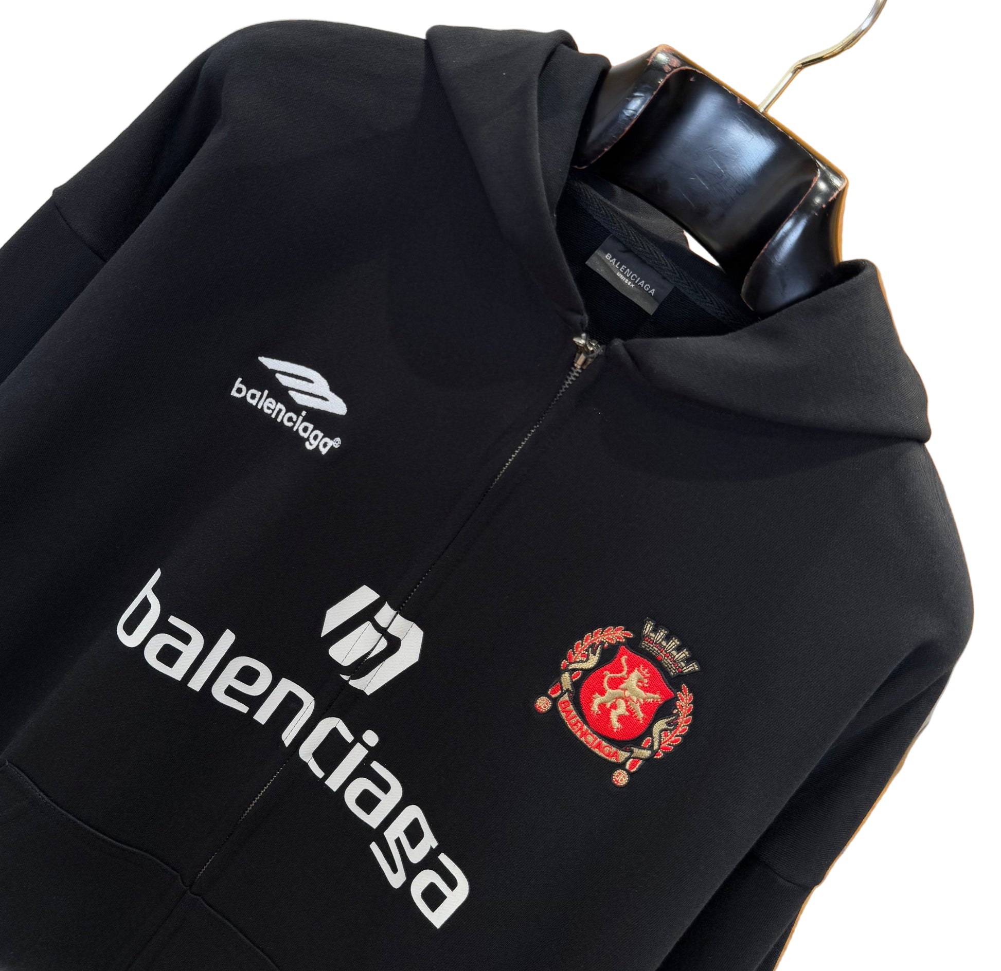 Balenciaga | Black Zip Hoodie | Crest & Logo Graphic