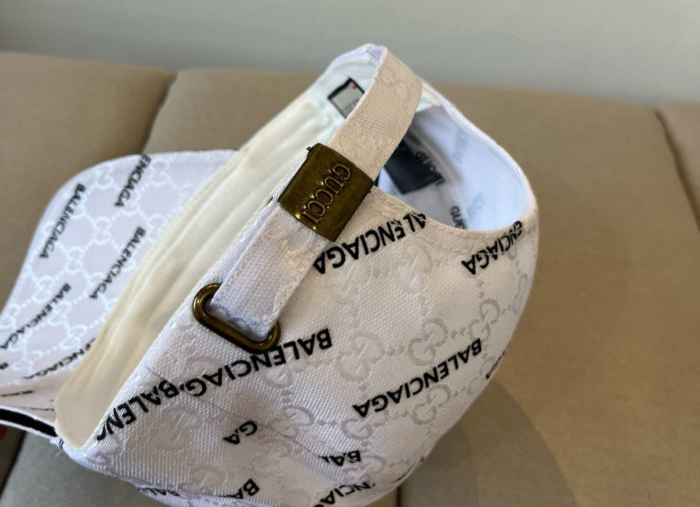 The Balenciaga x Gucci Hacker Project cap is a collision of two fashion powerhouses, reworking Gucci’s monogram canvas with bold Balenciaga typography throughout. This baseball-style cap blends luxury heritage with streetwear edge, standing out as a crossover statement piece from one of the most talked-about collaborations in recent memory.