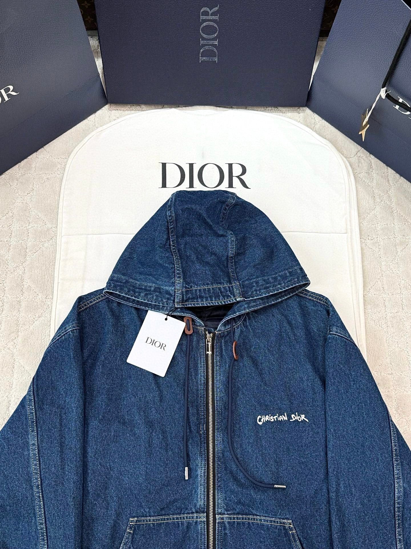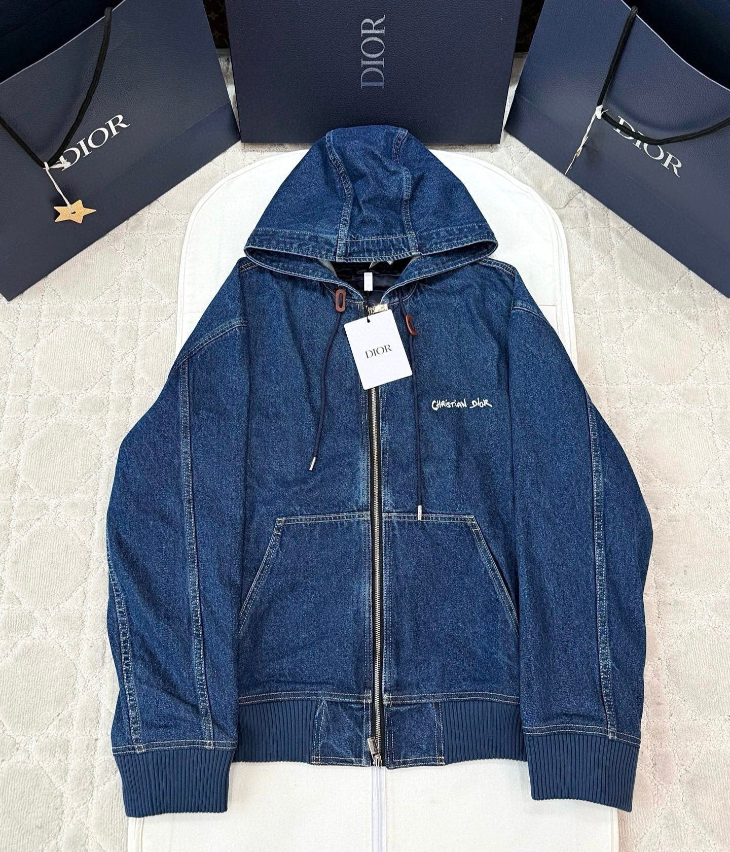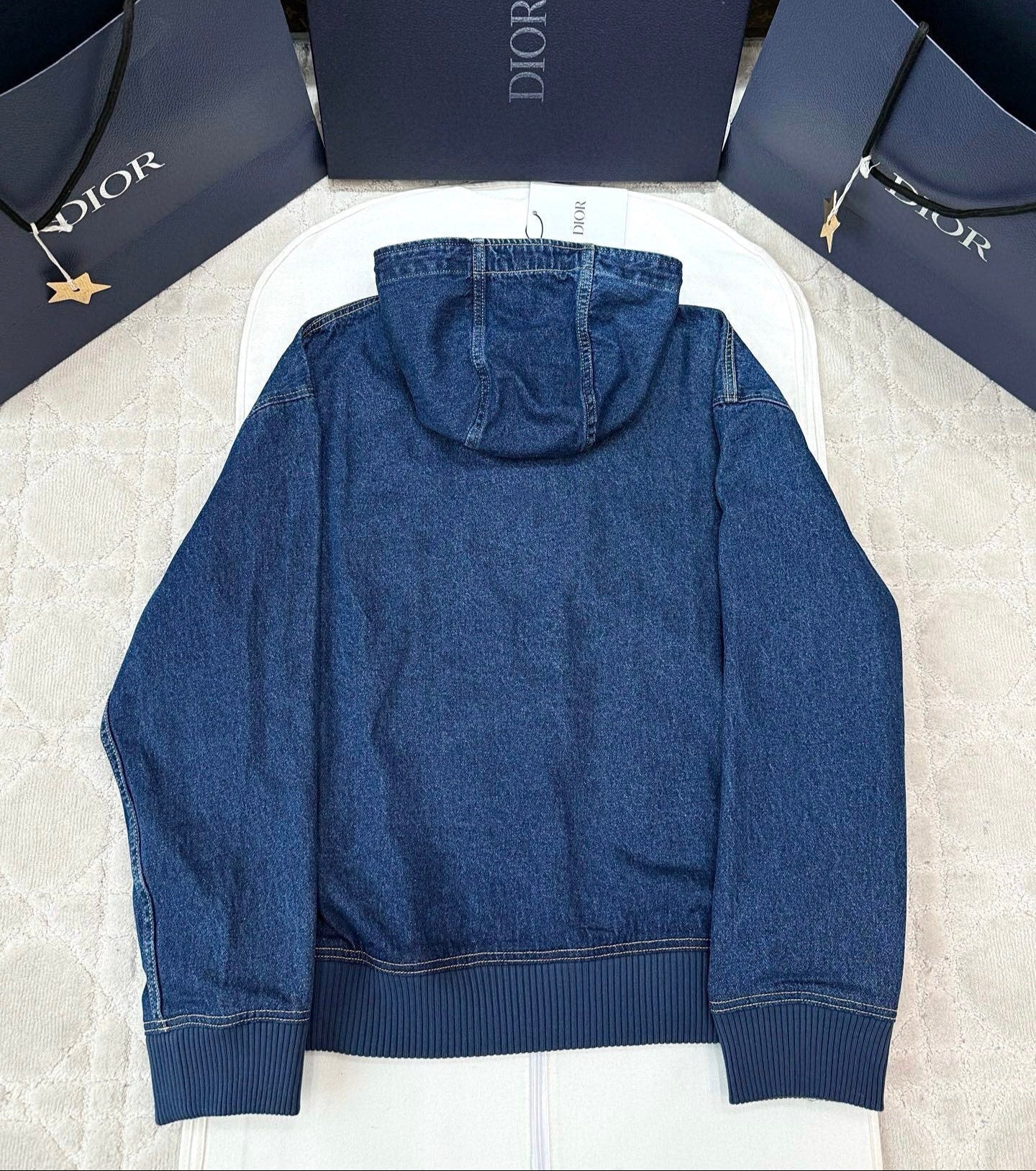 The Dior Blue Denim Zip Hoodie fuses casual workwear texture with Parisian precision. Crafted in indigo cotton denim, it’s finished with ribbed cuffs and hem, a drawstring hood with metal tips, and dual front pockets. A discreet Christian Dior embroidery marks the chest, balancing utility with refinement.