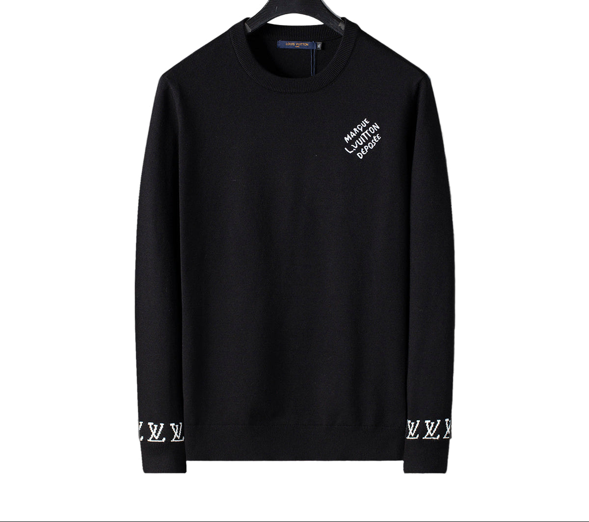 Classic luxury reworked for the modern street silhouette. This Louis Vuitton knit crewneck features refined chest embroidery reading “Marque L. Vuitton Déposée,” paired with discreet LV cuff detailing that sets it apart without overstating. The cotton-blend knit offers a structured yet breathable fit — ideal for seasonal layering or elevated casual wear. Available in three versatile tones: black for edge, white for contrast, and cobalt blue for presence.