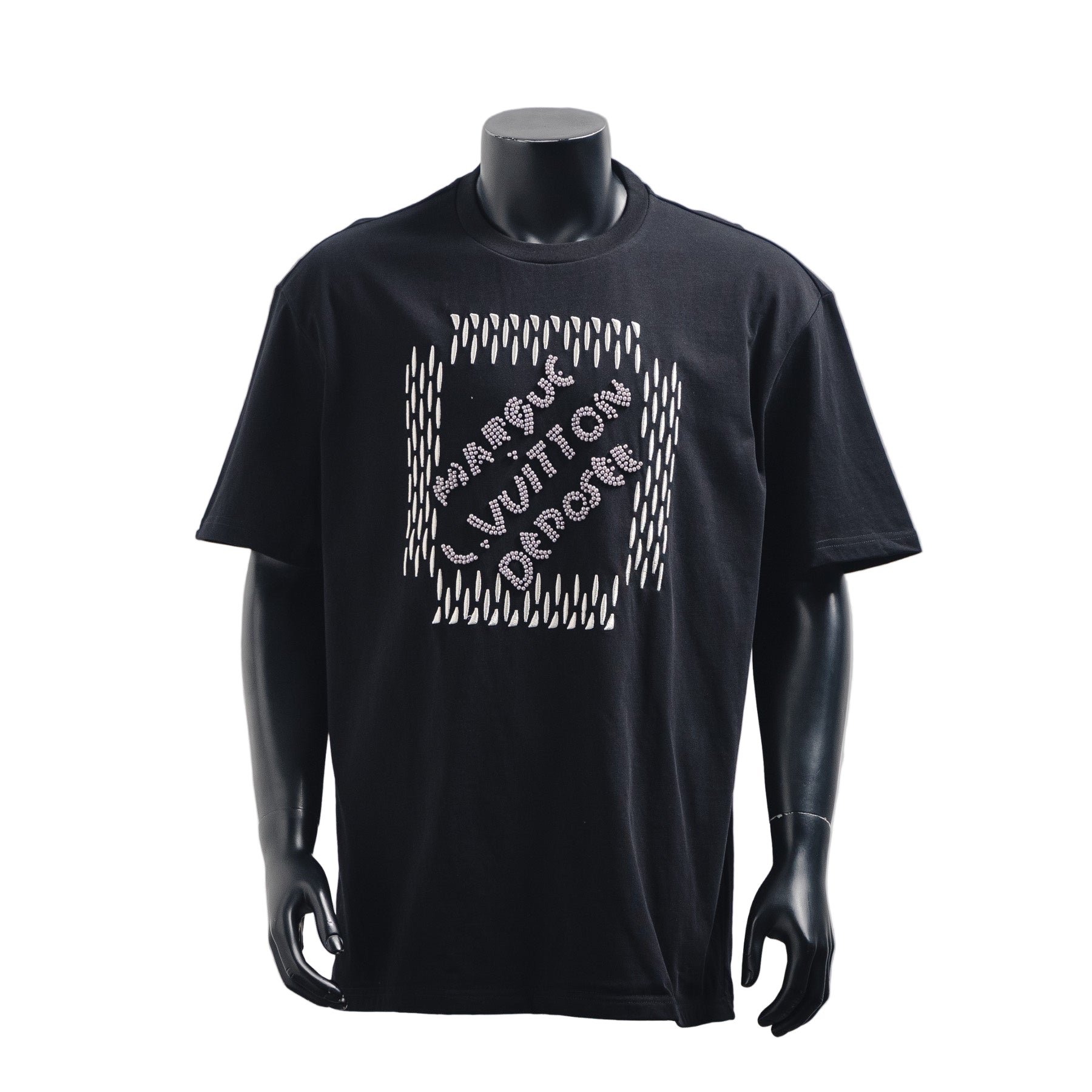 A refined statement piece from the Louis Vuitton archive aesthetic. This graphic monogram tee combines effortless streetwear energy with the precision of high-end craftsmanship. The bold LV-inspired typography sits within a geometric print that plays with texture and symmetry, creating a dimensional look against the soft cotton base.
