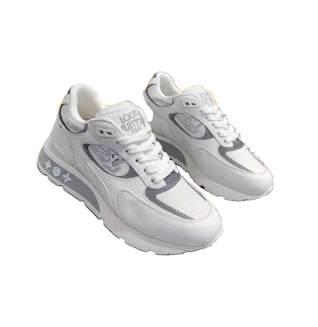 The Louis Vuitton Run 55 Sneaker in Gris Monogram Denim is a luxury runner built for bounce, flex, and high-fashion movement. Inspired by performance silhouettes, this city sneaker features a lifted rubber outsole for optimal comfort and energy return. The upper blends technical materials with Monogram denim, accented by LV Circle branding on the tongue and Monogram Flowers on the heel and tread. It’s a statement piece for collectors, stylists, and anyone chasing elevated streetwear.