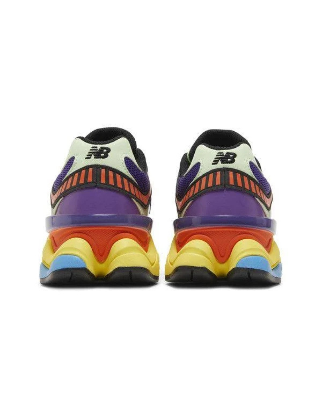 The New Balance 9060 “Prism Purple” is a fearless clash of color and futurism. This statement sneaker merges the Y2K tech-runner aesthetic with bold modern hues — a gradient palette of purple, orange, neon yellow, and blue wraps across layered mesh and suede panels. The oversized pod-style midsole delivers signature New Balance cushioning, designed for all-day comfort and standout street presence.