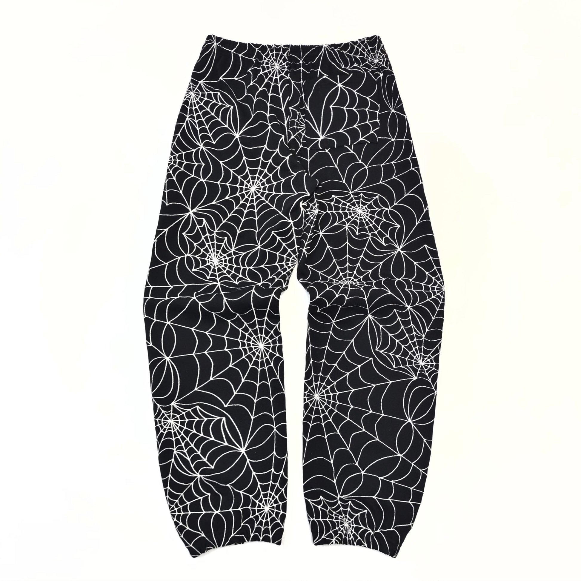 Brand new Sp5der AOP Web Sweatpants in black, a standout piece featuring Sp5der’s iconic all-over spiderweb design. Crafted from heavyweight cotton fleece with a soft interior, these sweatpants deliver both comfort and statement-level style. The embroidered web pattern covers the entire silhouette, accented with a small Sp5der logo hit for authenticity.