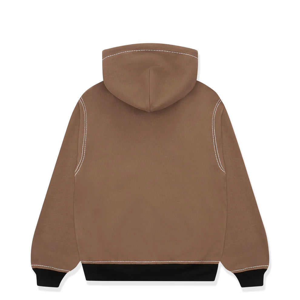 The Sp5der T&F Zip Hoodie in Brown/Red takes bold streetwear energy and pushes it into statement territory. Built with heavyweight fleece, it features a full zip closure, kangaroo pocket, and ribbed cuffs and hem for a secure fit. The standout detail is the oversized Sp5der logo patch embroidered in vibrant red across the chest, contrasted against earthy brown and black paneling.