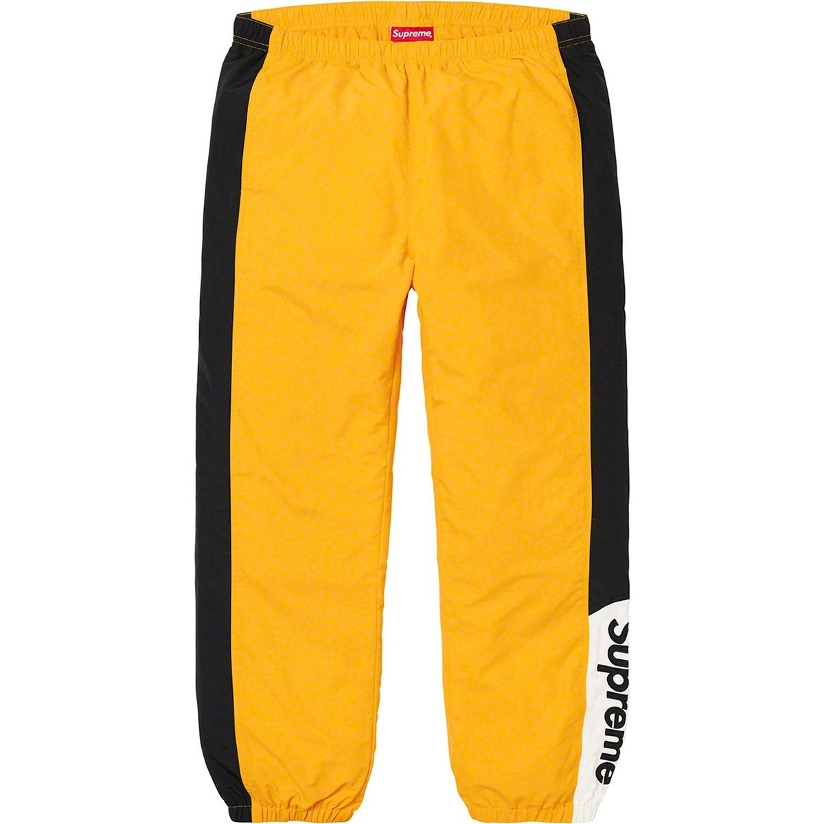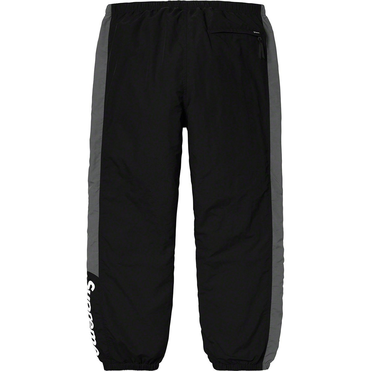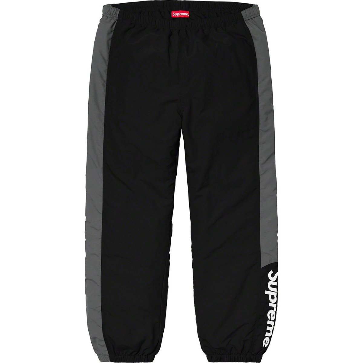 Supreme’s Side Logo Track Pants are a streetwear staple built for both style and comfort. These pants feature bold contrasting side panels with a clean “Supreme” vertical logo hit at the lower leg, elastic cuffs for a tapered fit, and lightweight construction ideal for everyday wear.